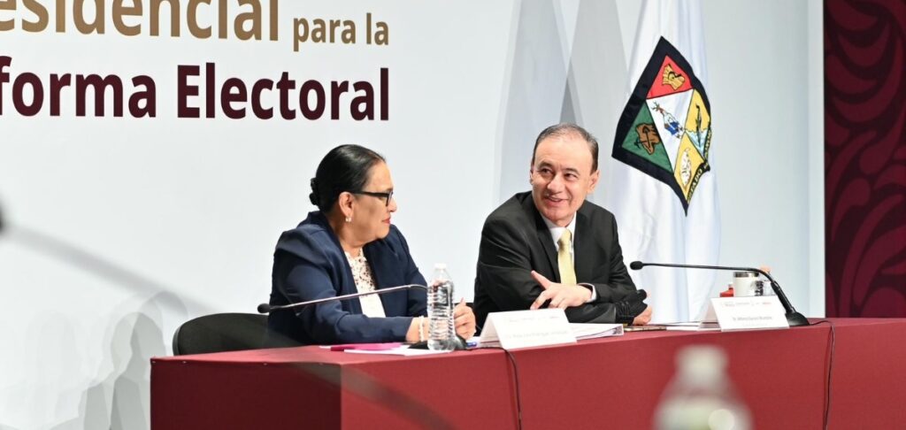 Hermosillo, Sonora; 8 de octubre de 2025.- Con la finalidad de conocer las opiniones y propuestas sobre temas específicos de los diferentes sectores de la sociedad para la construcción de un proyecto de Reforma Electoral, acorde a las condiciones actuales en México, el gobernador Alfonso Durazo Montaño y la secretaria de Gobernación, Rosa Icela Rodríguez Velázquez, encabezaron los trabajos de la Comisión Presidencial para la Reforma Electoral.