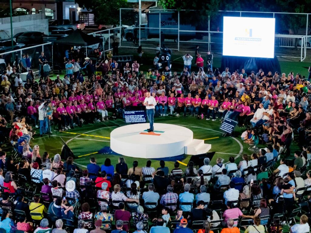 El presidente municipal Toño Astiazarán, acompañado de Patricia Ruibal Zaragoza presidenta de DIF Hermosillo, se reunió con las y los vecinos en el parque Cuatro Olivos, de las calles Mátape e Israel González, con un mensaje en el que describió ante cientos de personas acciones y logros en materia de seguridad, inversión en obras y apoyos a población vulnerable.